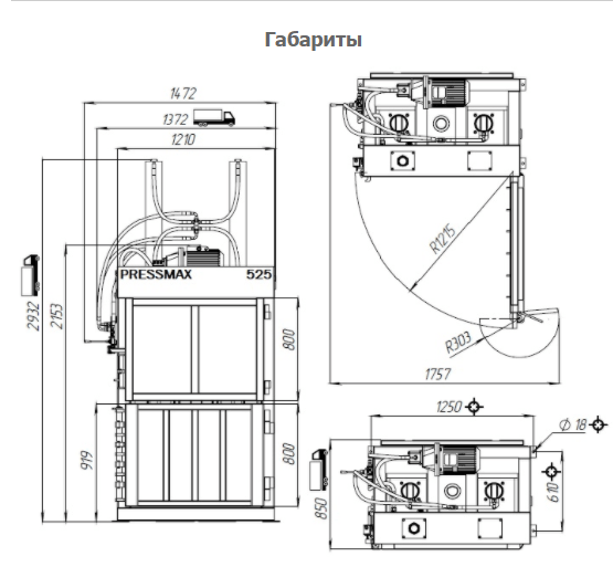 PRESSMAX 525 обладает широкой универсальностью при сохранении привлекательной стоимости. Способен прессовать практически любой материал, при этом усилие, создаваемое им, а это 25 т, формирует плотный брикет, масса которого, в зависимости от прессуемого материала, достигает 250 кг.
